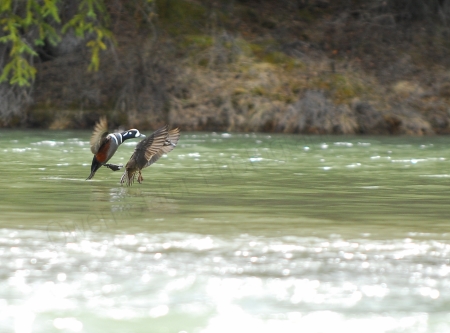 This spring I saw numerous Harlequin ducks which are one of my favourites. These birds fly over the Rocky Mountains each spring to spend a few months in Alberta surfing the fast flowing waters for food and to nest before migrating back to the coast in the fall to spend the winter in the ocean.