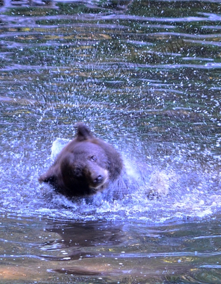Once she reached the shallow tip of the lake she splashed and rolled around getting her head and ears wet. I guessed that she would begin to shake her head and so I quickly selected a shutter speed that I hoped would capture the motion of her head shaking and radiating water droplets while keeping her eye in focus. I have been trying for years to get photos of wildlife doing this behaviour but each time I have been a bit off with the shutter speed and aperture with the image either too blurry or too static. This time I got lucky! She turned and faced me before shaking her head back and forth to get the water off her face and ears. For sure, one of my favourite photos to date.