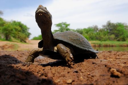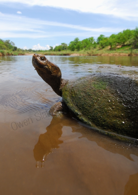 We came down a steep section of the gravel road and had to drive across a section of road that had been flooded by a small pond adjacent to the road. As we approached the flooded road I spotted a turtle, then another and another. They appeared to have spotted us and had no fear of our car. As our tires touched the water they started walking more quickly towards the car. Soon over 10 were ‘running’ towards the car. To get these photos I put my wide angle lens on, opened the door, held my camera just above the water and tried to center a turtle in the middle of the frame so that the camera would automatically focus on it. Thankfully it worked and I managed to get several photos from their perspective. It wasn’t until I got home that I figured out that these are Serrated Hinged Terrapin (Pelusios sinuatus), a relatively common terrapin found from East Africa down to South Africa. Apparently they are naturally quiet bold as a found several photos of them perched on top of hippos! I suspect these ones associate cars with free handouts as they were way too friendly.