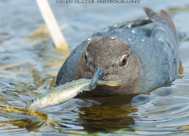 Seconds later it was diving into the frigid waters and hunting down a fish. With water droplets beading off the feathers, it surfaced and started swimming towards me to the nearest bank. The fish squirmed back and forth but couldn’t break free from the tight grip on the tail. These fish are known as sticklebacks, aptly named for the multiple sharp spines that run along their backs. This didn’t seem to deter the dipper though. It managed to avoid the spines and once to shore the fish was quickly put out of its misery.