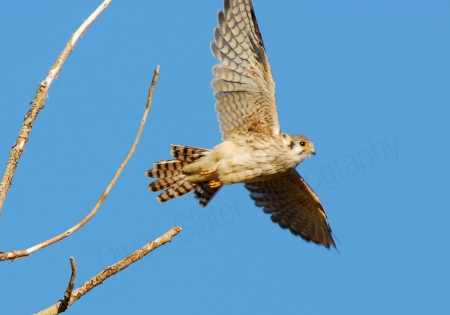 It took about 30 minutes of sitting in my car with my camera pointed out the window with my finger held on the shutter release button to get this photo. Finally the kestrel flew off to go hunting and quickly returned with a large insect. This was one of many kestrels I saw flying around and hunting in the valley below Mt. Vimy.