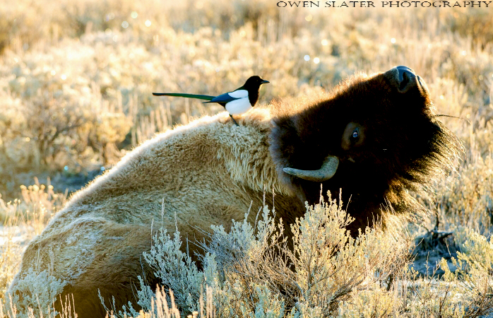 Whenever I come across a carcass I have visions of wolves or cougars, or the even more elusive wolverine catching the scent and coming in to feed. The thought of witnessing these rarely observed animals in the wild doing things that I or few others have ever seen before keeps me out in the wilderness for hours on end. So with that optimism in mind, I hunkered down and waited. As you can probably imagine, sitting around in -15 degree Celsius temperatures is no fun. You can’t move around to keep warm since that will scare off any wildlife and the cold has a way of quickly removing any resolve that might have initially been there. But that day I was determined to give it a few hours so I waited some more. Within about an hour some magpies showed up and distracted me from the cold. In between feeding on the kill, they flew off to cash their food. Before flying back down to get more pieces of meat they perched in nearby trees and called out. This was great for me since it gave me enough time to turn the camera back on, compose the image and get my finger out of my glove to fire off the shutter. In their typical dramatic aerial flare, they swooped down to the carcass and fanned out their beautiful wings and tail feathers. I was treated to these displays for hours but eventually my resolve was broken. The tipping point was the hot packs I had placed in my boots and gloves could no longer keep my toes and fingers warm. Getting a few images like this made the surrender a little easier but as I hiked back to my car I wondered what I would have seen if I had waited a bit longer.