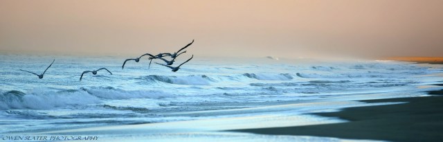 Similar to surfers, pelicans have figured out how to harness energy from waves. However, it is actually more closely related to what a pilot does during take off and landing than to surfing. Interestingly, it appears pelicans are one of only a few coastal birds to have figure this out. By flying so close to the rolling wave, they are able to gain lift, speed and decreased wind resistance created by the air that gets trapped between the water surface and the underside of the wing. This air cushion essentially supports the bird’s weight just above the water’s surface. As the wave increases in height the pelican rises up parallel to the wave to maintain lift. Just prior to the wave breaking, the bird will then descend along the leading edge of the wave, gaining speed along the way much like a surfer does. By doing this they can greatly increase their flight speed without ever having to flap their wings. The key for the pelican is to build up as much speed as possible before the wave breaks. Just as the wave starts to crash over itself the pelican resumes flying to get above the resulting air turbulence. As the next incoming wave moves into shore they reposition themselves along its leading edge and repeat the maneuver. In this way they can travel much longer distances much more quickly and with less effort than other birds. While pelicans and albatross were showing us how to use this effect well before we recognized its existence, it wasn’t until the Wright brothers came along that anyone used it. Even then, no one knew what it really was. Now the phenomenon is well described and in the aviation world it’s known as ground effect. Anyone that has flown in an airplane has felt this either at take off or landing. In large planes it is most noticeable just before landing, when the plane seems to hover just above the ground and actually gain speed just prior to touchdown. In small planes it is more noticeable at take-off, when the pilot maintains the airplane just off the ground to help increase the ground speed before ascent. Next time you fly watch for this effect and you will surely notice it if you haven’t already.
