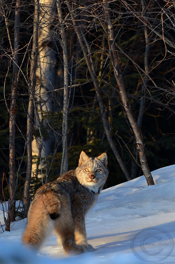 Starting off the latest photo collection with a bang! I just got back from helping some colleagues up in Alaska and took a few days to drive between Whitehorse, Yukon and Fairbanks, Alaska. A quick side trip down to Denali National Park paid off with four lynx sightings within a day! This was the first time I have seen lynx in the wild and I couldn’t have asked for a better photo opportunity. I was driving down the highway just north of the small town of Healy. The light was perfect and the surrounding mountains looked spectacular. I was scanning for wildlife when I spotted what I initially thought was a coyote. I hit the brakes and as I passed by it I realized it was a lynx! I think at this point I swore in excitement and my swearing continued when I realized I hadn’t set up my camera properly. I had switched lenses to photograph the mountains and had forgotten to switch back to the telephoto. I almost always make sure my camera is set up beside me ready to go in case any fleeting wildlife crosses in front of me on the road and I thought this mistake would cost me the opportunity to get photos. I frantically fumbled with the lenses and camera making sure I had the correct settings before I started to back up the car to get in position. Thankfully, the lynx stayed in the clearing and as I backed up I noticed a second one! Likely last year’s kittens as they weren’t fully grown yet. I managed to get a few shots off before they turned and disappeared into the trees. I quickly hit the playback button to see if I had managed to get any good shots and I was thrilled when I saw this one! The next day my lynx luck continued as I saw two more in Denali National Park. One was running down the side of the road hunting for snowshoe hares while it’s partner stayed on the other side of the snow bank. Unfortunately the light wasn’t great for photos and they lost the hare they were chasing, but it was still amazing to see. Overall the trip was a huge success with lots of great wildlife sightings, including numerous barren ground caribou, northern hawk owls, a dark phase red fox and beautiful scenery. Over the next few weeks I will post the best photos from the trip.