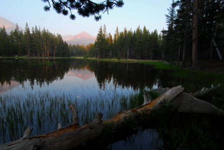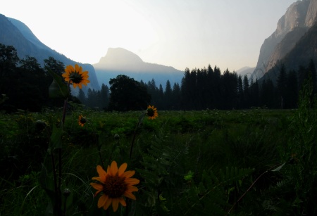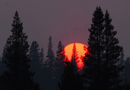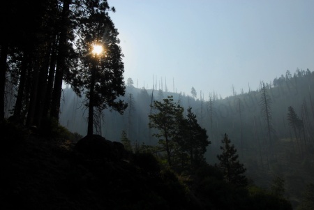 With hundreds of wild fires burning in California the sun was a deep red thirty minutes before sunset. This photo was taken from Tuolumne meadows.